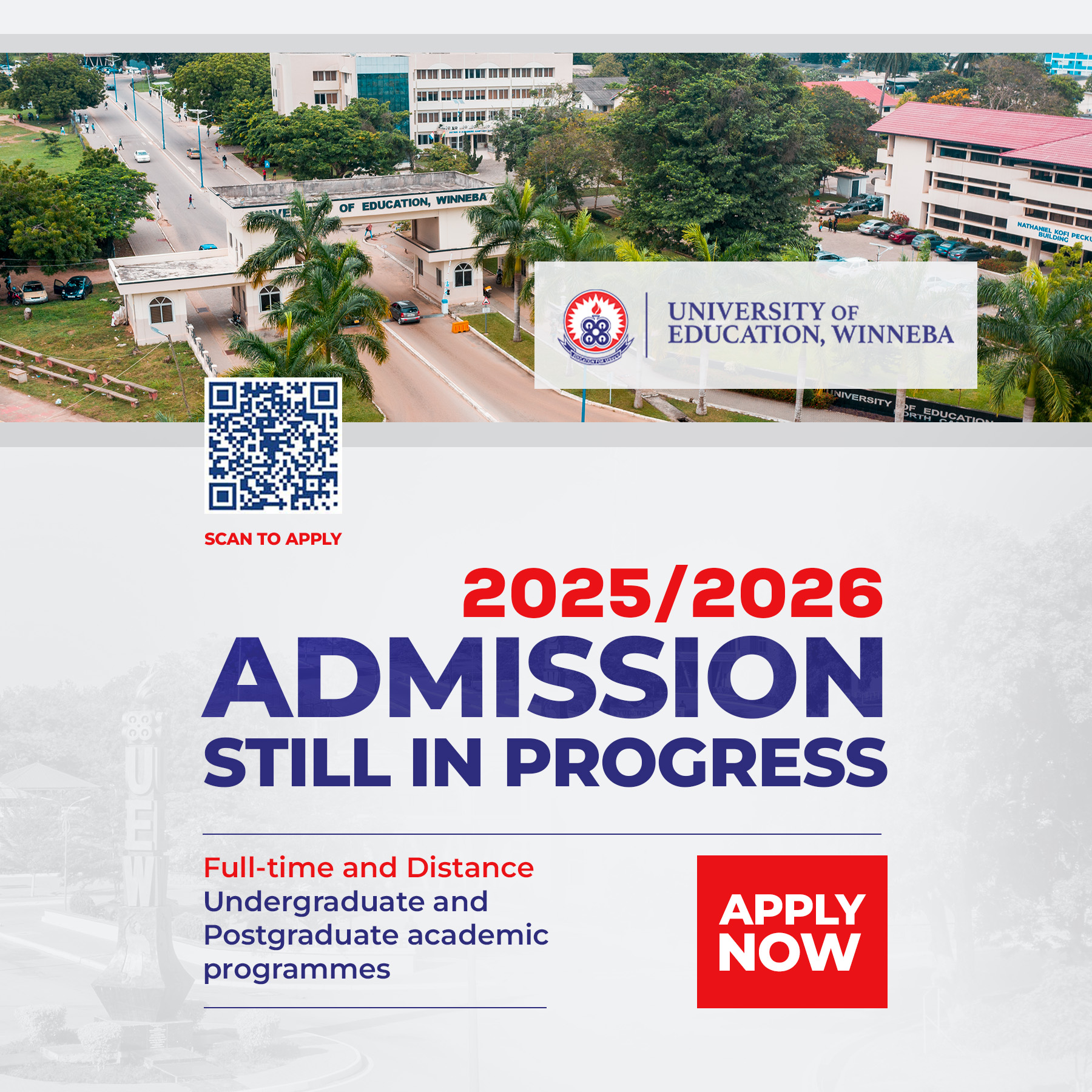The University of Education, Winneba (UEW) is pleased to announce that admissions for the 2025/2026 academic year are currently in progress. Prospective students are encouraged to apply for various undergraduate and postgraduate programs.